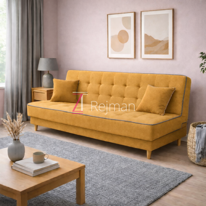 Wersalka Patrycja to elegancki i funkcjonalny mebel, który doskonale sprawdzi się w salonie, pokoju dziennym, młodzieżowym lub gościnnym. Jej minimalistyczna forma, dekoracyjne pikowanie oraz stylowe lamówki nadają jej nowoczesny i estetyczny wygląd, który świetnie komponuje się zarówno z wnętrzami skandynawskimi, jak i klasycznymi.
